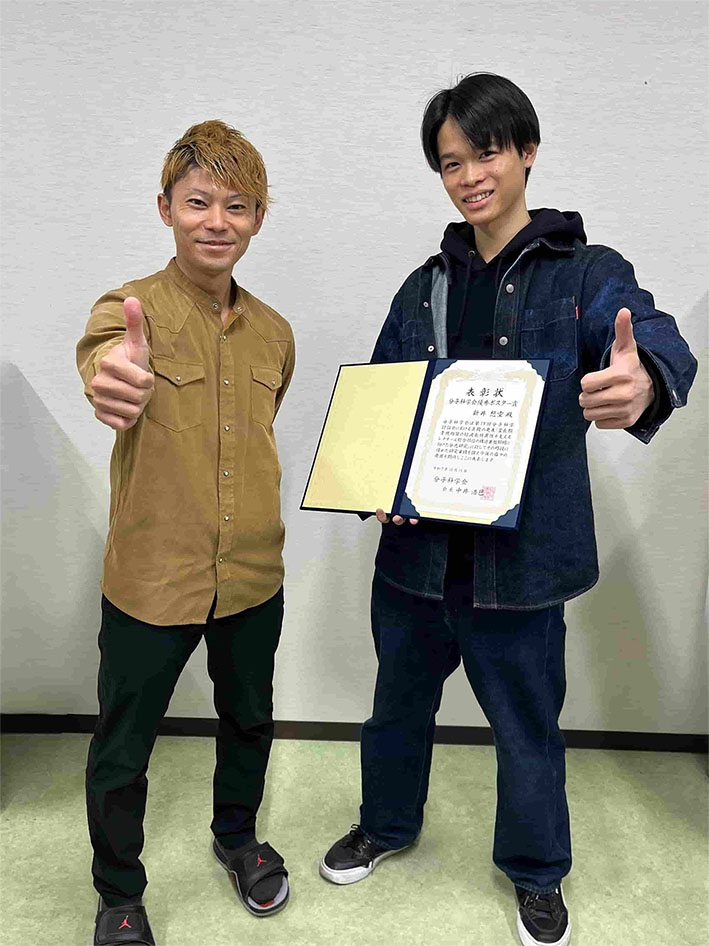 このたびはこのような栄誉ある賞に選出していただき、誠に光栄に存じます。本受賞は、常に愛情深くご指導くださる片山准教授、そして日々刺激を与えてくれる研究室の仲間たちの支えがあってこそ成し遂げられたものであり、心より感謝申し上げます。また、当学会では多くの方々と、学会名の通り白熱した討論を交わすことができ大変貴重な経験となりました。さらに実りある討論を重ねられるよう、研究に一層精進してまいります。