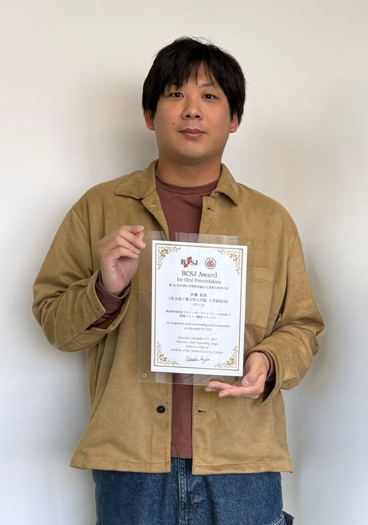 工学専攻生命・物質化学プログラムの伊藤侑真さんが中化連秋季大会BCSJ賞を受賞しました