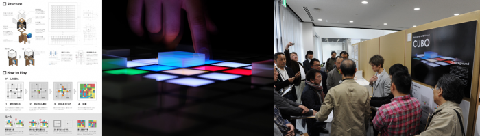 今回受賞した作品「CUBO」(クーボ)は「デジタルによって遊びの魅力を向上させること」をコンセプトに制作したボードゲームです。ゲームの内容はリバーシをベースにしており、デジタルによって可能となったルールや表現が散りばめられたものとなっています。1つずつのマスがサーボモータによって上下することで、アナログのボードゲームでは楽しむことのできないワクワク感を味わうことができます。