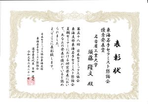 東海若手セラミスト懇話会 優秀発表賞