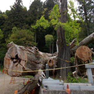 2020年7月豪雨で倒木した岐阜県瑞浪市大湫町大湫神明神社の大スギから樹木年輪セルロース同位体比を測定し、江戸時代初期以降約400年間にわたる東濃地方における夏季の乾湿変動を推定しました。また東濃地方の古文書に記された過去の長雨や干魃の記録と比較することで、樹木年輪セルロース同位体比が大気の乾湿変動の客観的記録として利用できることが確かめられました。