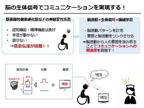 神経難病リハビリテーションにおいて意思伝達手段の確保は極めて重要な課題です。本研究は、脳機能でコンピュータ操作を可能とするブレイン・コンピュータ・インタフェースの脳機能計測に適した認知課題について、機械学習による判別性能と主観的負担感の側面から調査しました。結果、心的書字課題と図形回転想起課題の組み合わせが有用である可能性が示唆されました。