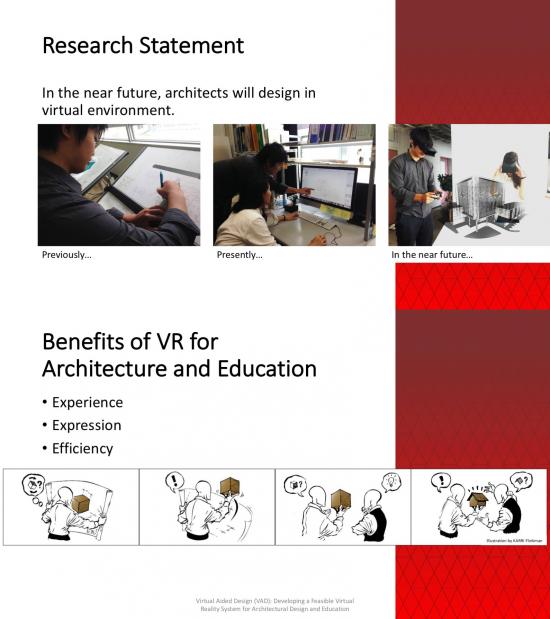 From this award, I hope this research on Virtual Aided Design (VAD) will receive enough awareness from the architectural design community, especially in architectural education and students alike to use virtual reality as the next-gen tool for design and creativity. It could change and improve the way we perceive and interact with architecture itself in a way that has never been done before.