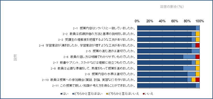 教員は授業への参加機会(質疑、討論、実習など)を作りましたか。 |
