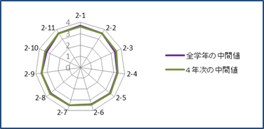 2-1〜2-11の4年次の中間値と全学年の中間値 |