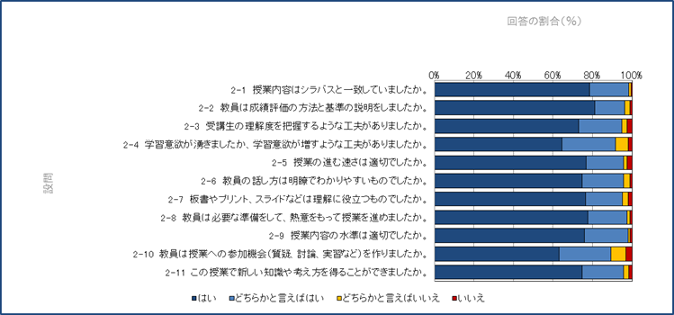 教員は授業への参加機会(質疑、討論、実習など)を作りましたか。 |