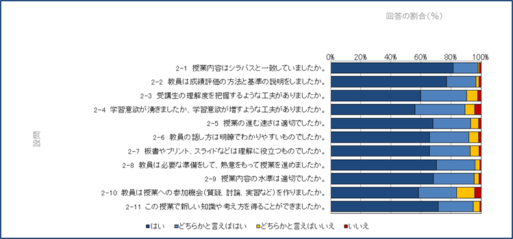 教員は授業への参加機会(質疑、討論、実習など)を作りましたか。 |