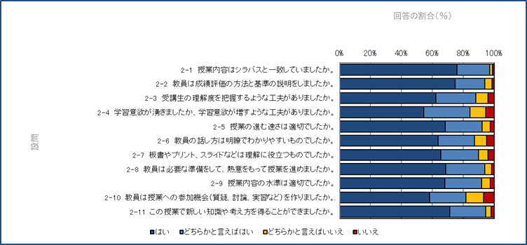 教員は授業への参加機会(質疑、討論、実習など)を作りましたか。 |