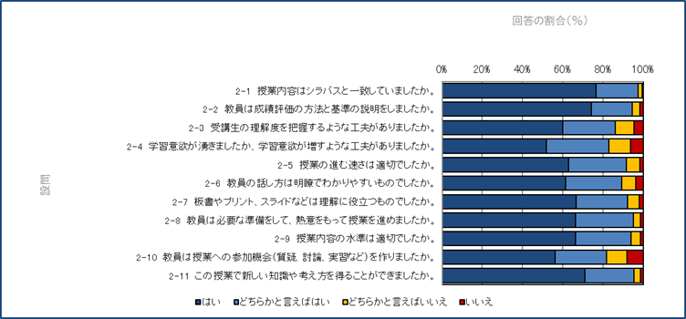 教員は成績評価の方法と基準の説明をしましたか。 |