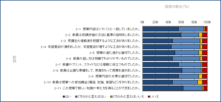 教員は成績評価の方法と基準の説明をしましたか。 |