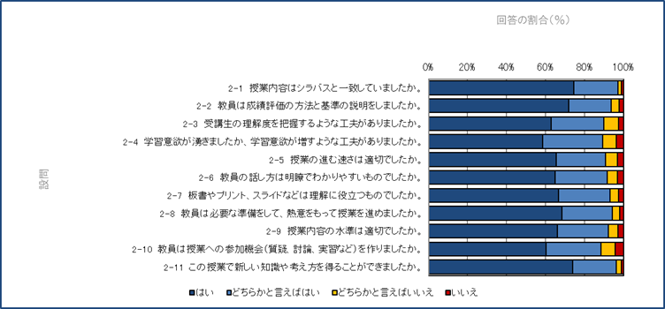 教員は授業への参加機会(質疑、討論、実習など)を作りましたか。 |