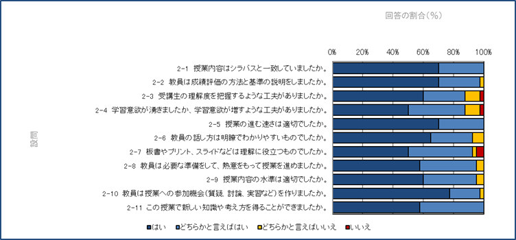 教員は授業への参加機会(質疑、討論、実習など)を作りましたか。 |