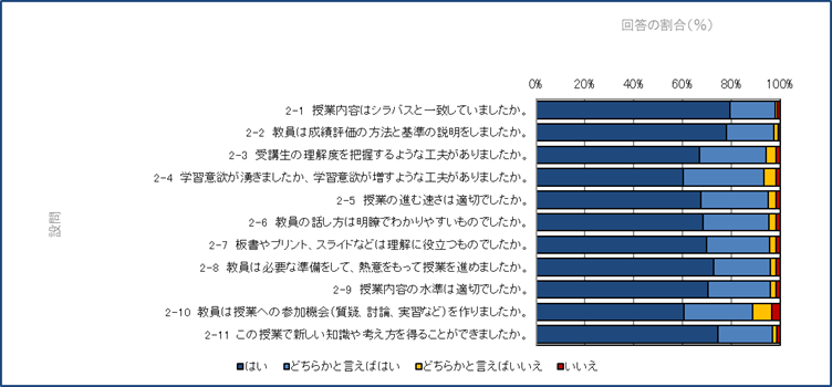 教員は授業への参加機会(質疑、討論、実習など)を作りましたか。 |