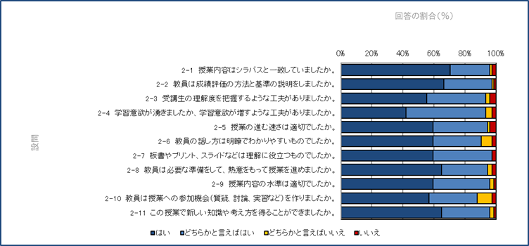 教員は成績評価の方法と基準の説明をしましたか。 |