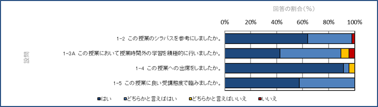 この授業において授業時間外の学習を積極的に行いましたか。 |