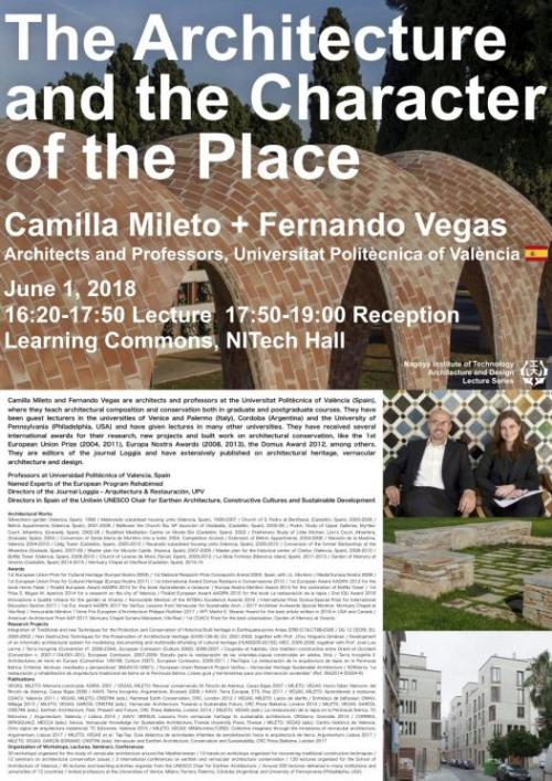 名古屋工業大学では6月1日、バレンシア州立工芸大学のCamilla Mileto教授 Fernando Vegas教授による現代建築家特別講義をNITech Hall2Fラーニングコモンズにて開催いたします。 お二方はスペインのカタルーニャ地方に伝統的に伝わる数々の建築技術を現代建築の設計に応用することで世界的に知られる建築家です。 レクチャー後は、お二方を囲んで、無料のレセプションを予定しております。 奮ってご参加ください。