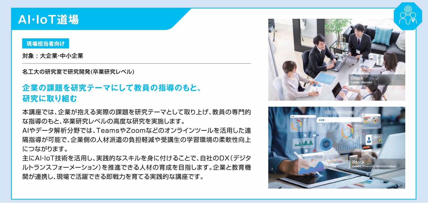 | ①AI・IoT道場 | 名工大の研究室で研究開発(卒業研究レベル) | 詳細 |